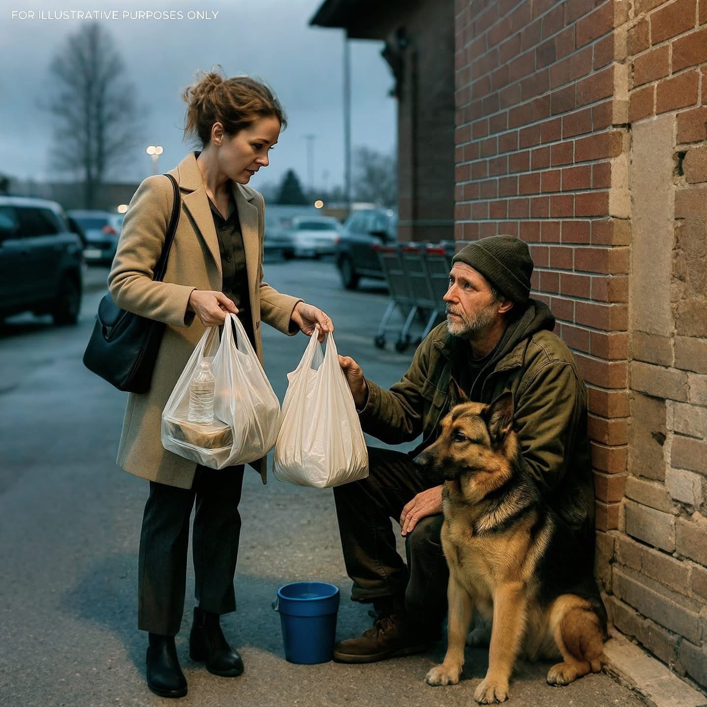 Ao lado dele, um grande pastor-alemão mantinha-se alerta, fiel, quase como se estivesse protegendo alguém que já não tinha forças para se proteger sozinho.