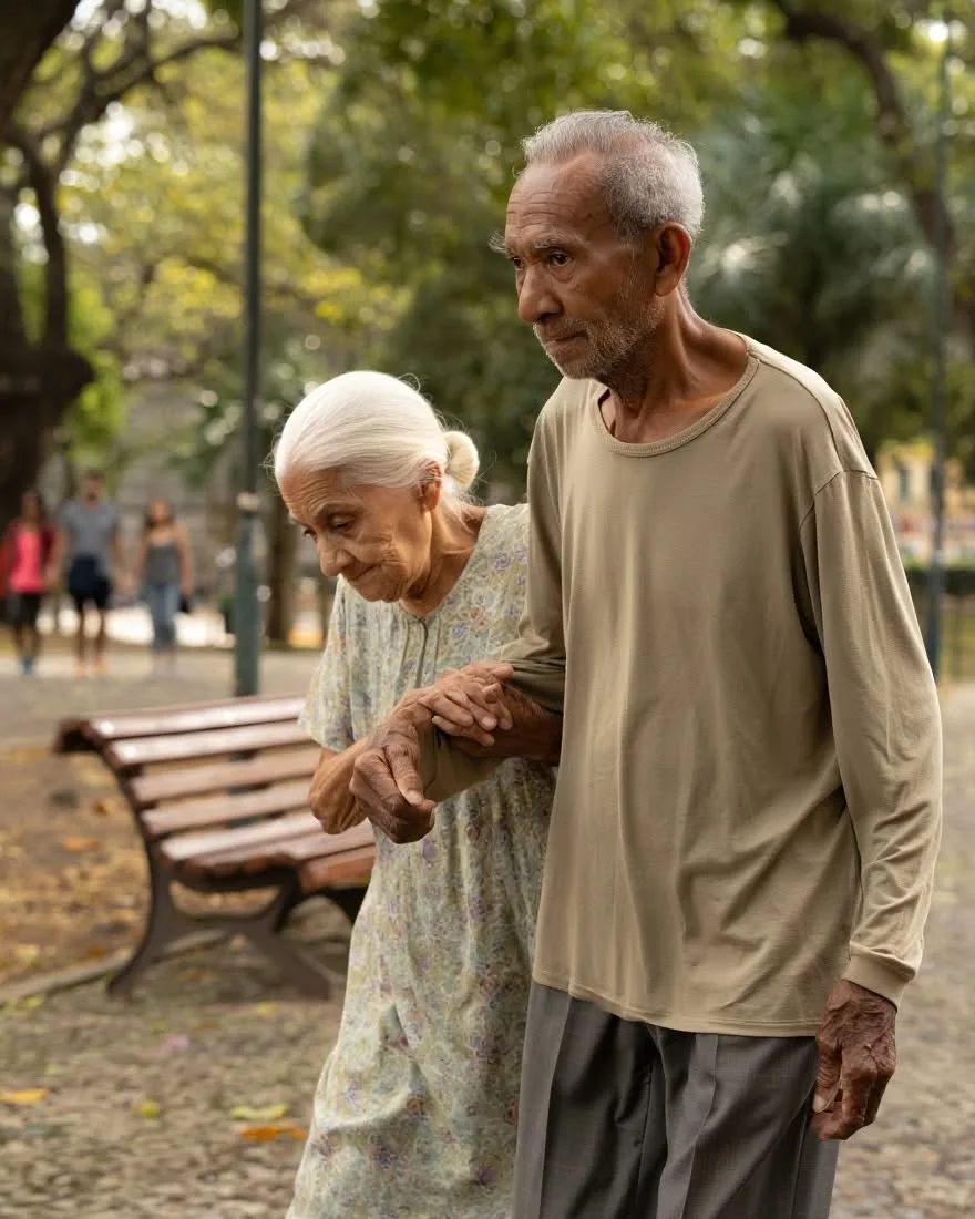 Ele já passou dos 80 anos, mas insiste em segurar a mão da esposa aonde quer que vá. Caminham devagar, como se o tempo tivesse aprendido a respeitar o ritmo deles.