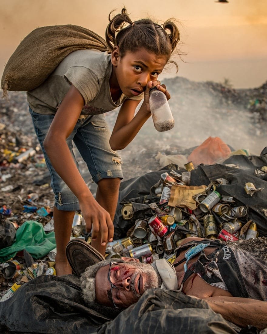 Ele tentou rir, mas acabou tossindo. Com muito esforço, apoiou-se no ombro fino da menina. Ela era quase metade do tamanho dele, mas o guiou com firmeza entre sacos rasgados até saírem do lixão, sob o céu alaranjado do entardecer.