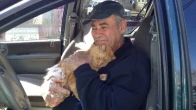 “Em defesa dele,” disse Elena, “o gato ficou bem festivo de roxo.”