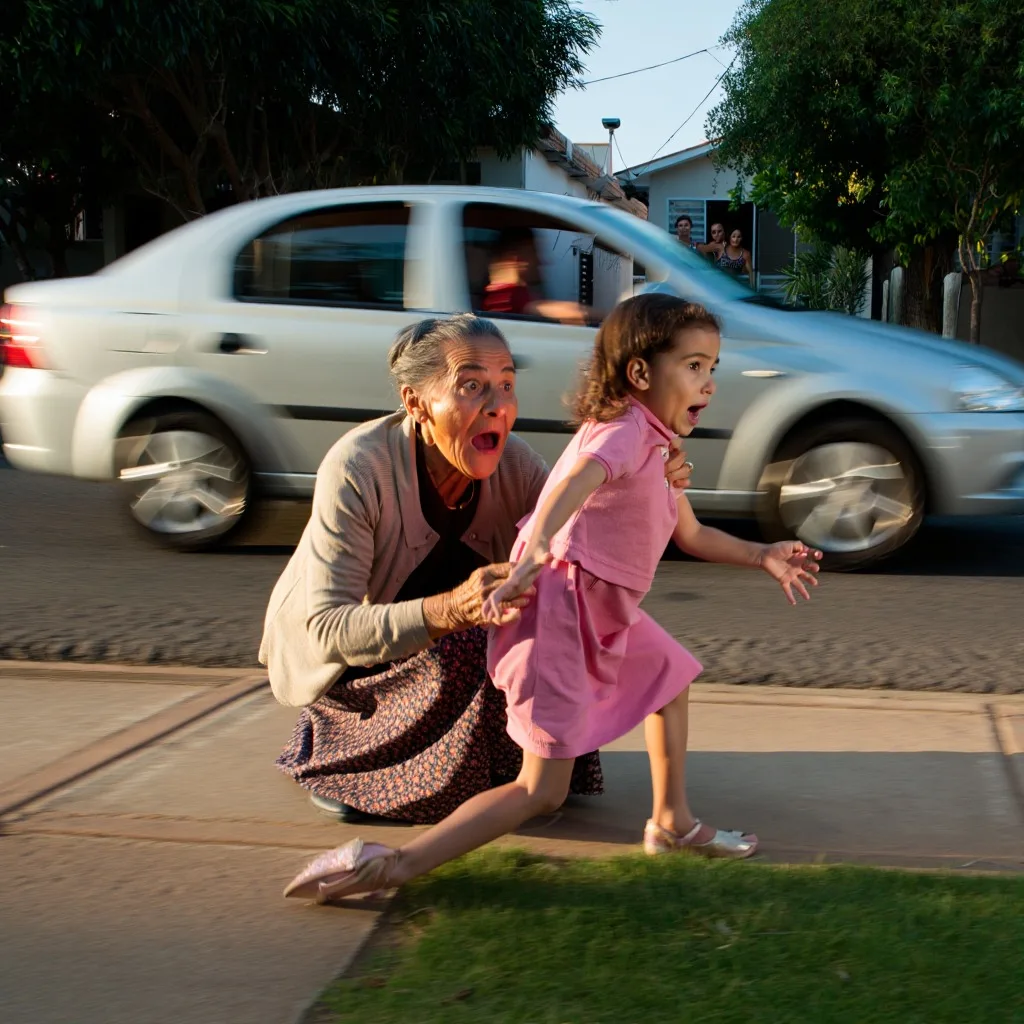 E, em um instinto puro de amor, empurrou a neta com força.