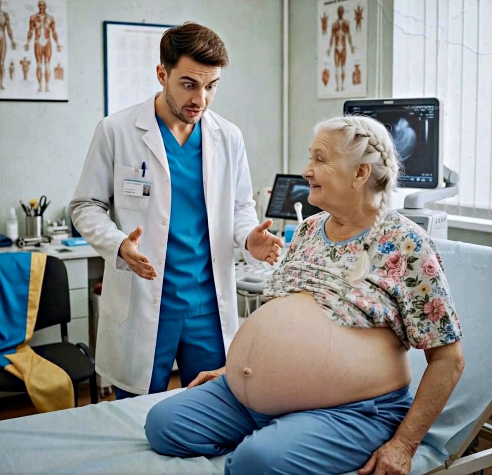 Quando, segundo seus cálculos, havia chegado ao nono mês, decidiu finalmente ir ao ginecologista para entender como seria o parto. O médico estranhou sua idade e sua segurança — mas iniciou o exame.