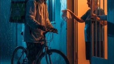 Ninguém olha nos olhos de um entregador em dia de chuva.
